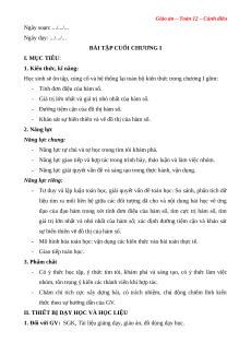 Giáo án Bài tập cuối chương 1 Toán 12 Cánh diều