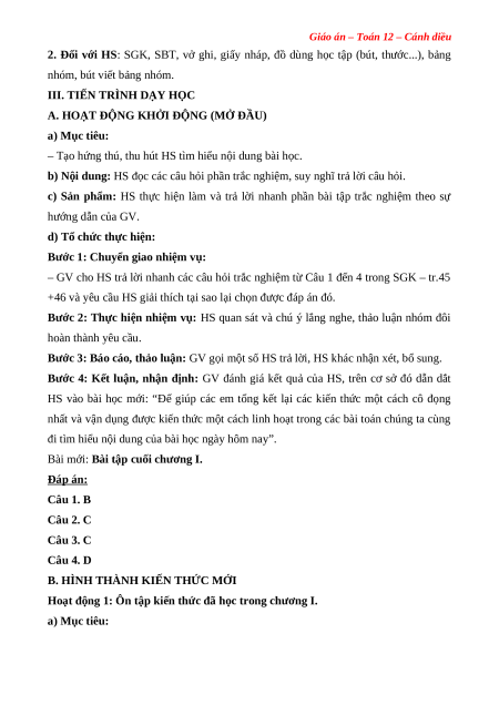 Giáo án – Toán 12 – Cánh diều cho bạn.
