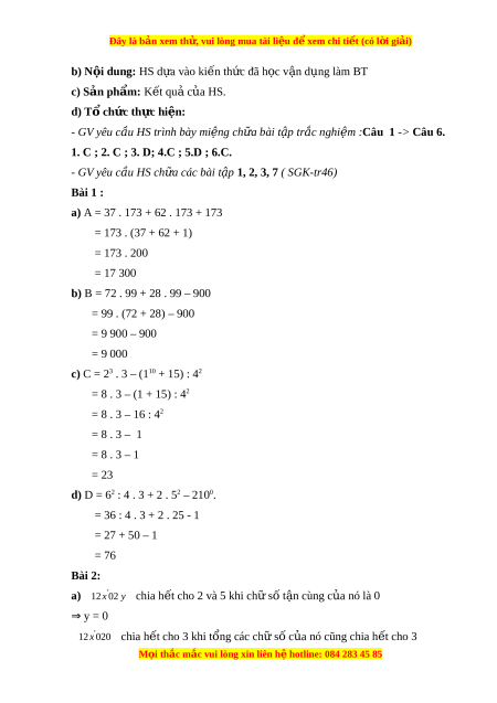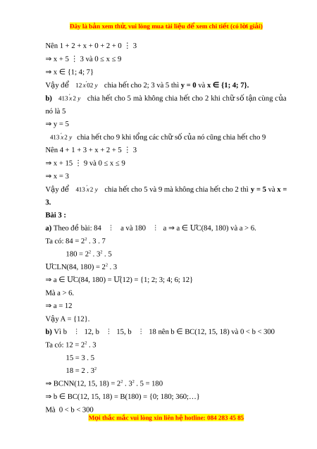 12 x 02 y chia h t ế cho 2 và 5 khi ch s ữ t ố n ậ cùng c a nó l ủ à 0 ⇒ y = 0 ´ 12 x 020 chia h t ế cho 3 khi t ng các ổ ch s ữ c ố a ủ nó cũng chia h t ế cho 3 M i ọ thắc m c