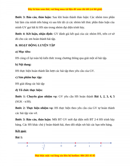 Giáo án Bài tập cuối chương 1 Toán 7 Cánh diều