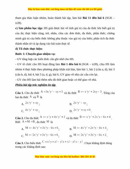 • Nhóm 2. Các phép tính với đa thức nhiều biến