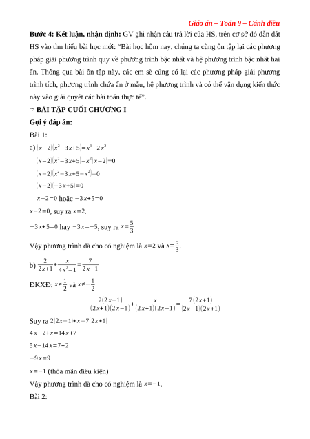 gắn với phương trình tích, phương trình chứa ẩn ở mẫu và hệ phương trình bậc nhất hai ẩn.