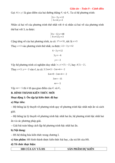 – Hệ thống lại lý thuyết về phương trình bậc nhất hai ẩn, hệ phương trình bậc nhất hai