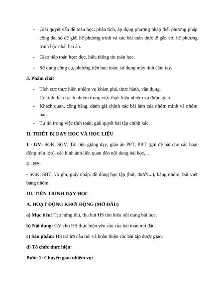 II. THIẾT BỊ DẠY HỌC VÀ HỌC LIỆU