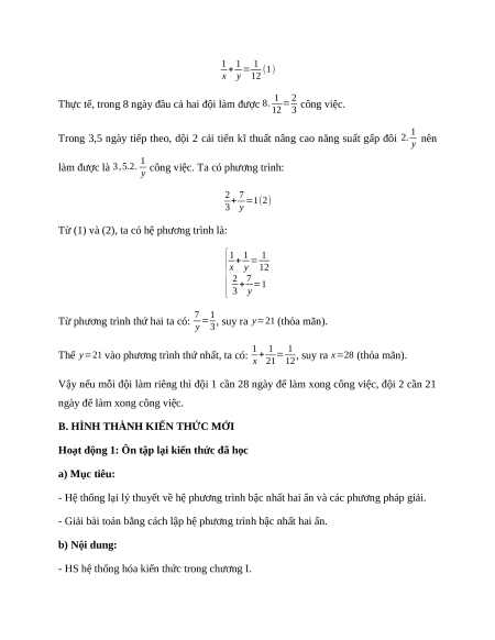 - Giải một số bài toán bằng cách lập hệ hai phương trình bậc nhất hai ẩn.
