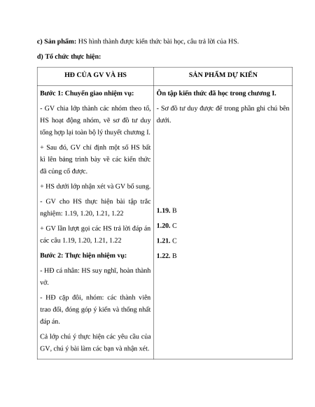 c) Sản phẩm: HS trả lời câu hỏi và hoàn thiện các bài tập được giao.