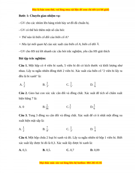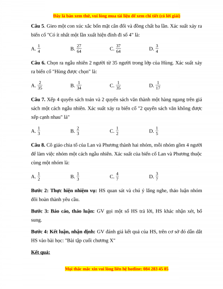 - Tính xác suất trong một số bài toán đơn giản bằng cách sử dụng phương pháp tổ