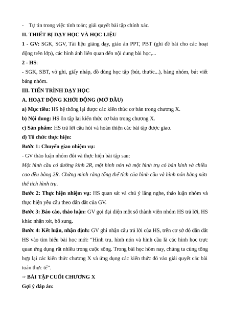 - Vận dụng các kiến thức về hình trụ, hình nón và hình cầu để giải quyết một số vấn đề thực tiễn. 2. Năng lực