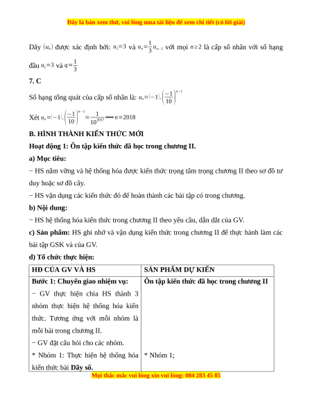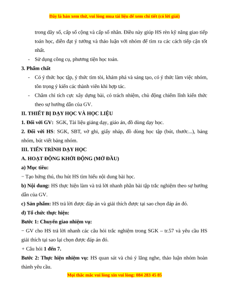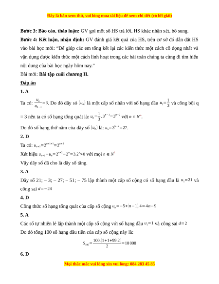 trong dãy số, cấp số cộng và cấp số nhân. Điều này giúp HS rèn kỹ năng giao tiếp