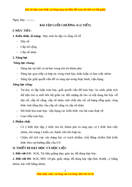 ợ tác trong trình bày, th o ả lu n ậ và làm vi c ệ nhóm - Năng l c ự gi i ả quy t ế v n ấ đ ề và sáng t o ạ trong th c ự hành, v n ậ d n ụ g. Năng l c ự riêng: - Tư duy và l p ậ lu n ậ toán h c ọ , gi i ả quy t ế v n ấ đề toán h c: ọ So sánh, phân tích dữ li u ệ tìm ra m i ố liên hệ gi a ữ các đ i ố t n ượ g đã cho và n i ộ dung bài h c ọ về dãy số, c p ấ số c n ộ g, c p ấ số nhân, tính ch t ấ dãy s , ố số h n ạ g t n ổ g quát, công th c ứ tính t n ổ g dãy c a ủ c p ấ s ố c n ộ g và c p ấ s ố nhân.