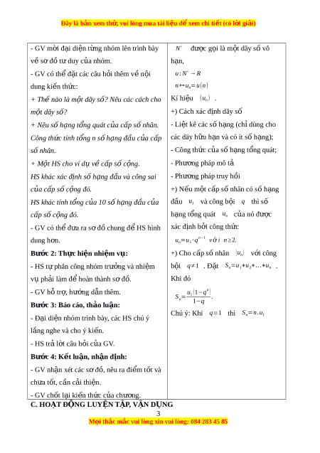 Đây là bản xem th , vu ử i lòng mua tài li u ệ đ xe ể m chi ti t ế (có l i ờ gi i ả ) - GV m i ờ đ i ạ di n ệ t n ừ g nhóm lên trình bày N¿ đ c ượ g i ọ là m t ộ dãy s ố vô v ề s ơ đ ồ t ư duy c a ủ nhóm. h n ạ , - GV có th ể đ t ặ các câu h i ỏ thêm v ề n i ộ
