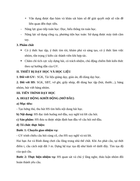 + Vân dụng được đạo hàm và khảo sát hàm số để giải quyết một số vấn đề