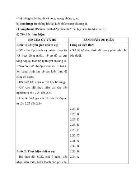 + GV lần lượt gọi các HS trả lời đáp án từ câu 2.25 đến 2.34. 2.25. D 2.26. B 2.27. D 2.28. B 2.29. C 2.30. C 2.31. A 2.32. B