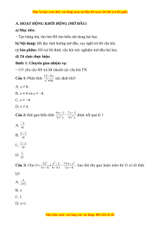 A. HOẠT ĐỘNG KHỞI ĐỘNG (MỞ ĐẦU) a) Mục tiêu: