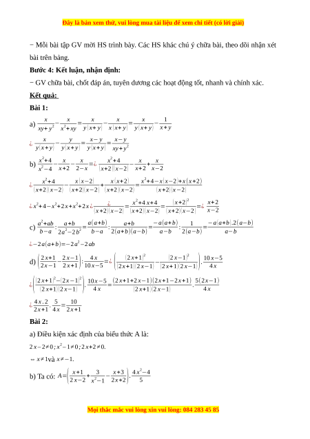 - Phép cộng, phép trừ phân thức đại số.