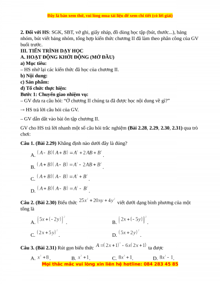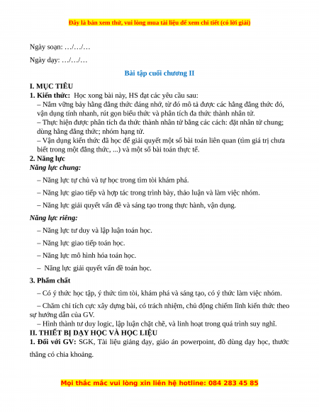 Đây là bản xem thử, vui lòng mua tài liệu để xem chi tiết (có lời giải)