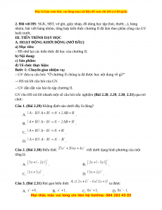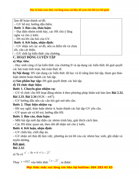 – GV nhận xét thái độ làm việc, phương án trả lời của các nhóm học sinh, ghi nhận và tuyên dương. Kết quả: Bài 2.32: a) Ta có Thay vào biểu thức , ta được: