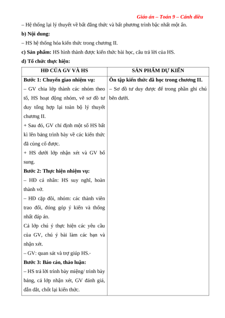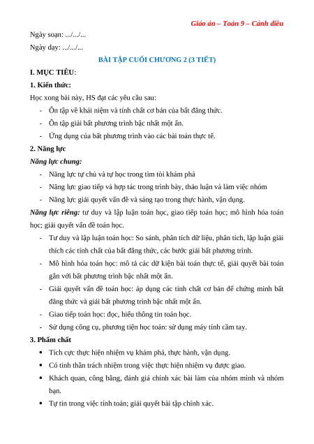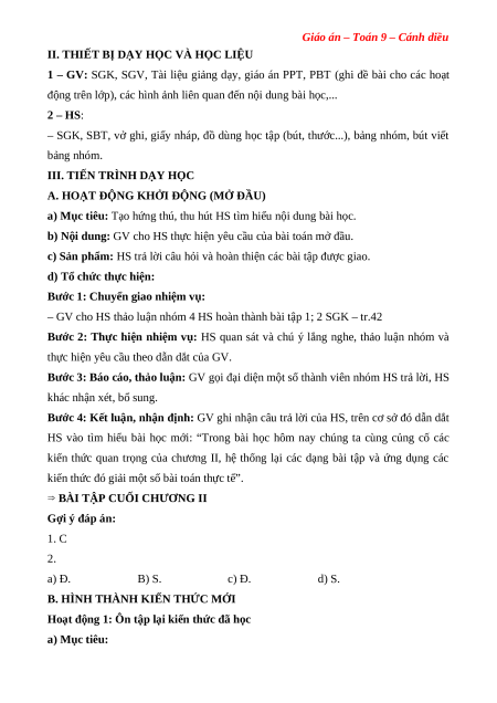 Giáo án – Toán 9 – Cánh diều Ngày soạn: .../.../... Ngày dạy: .../.../...