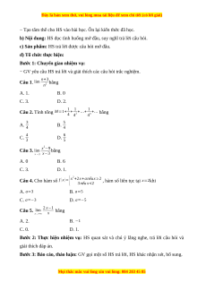 − GV yêu cầu HS trả lời và giải thích các câu hỏi trắc nghiệm. n+3 Câu 1. lim bằng n2 A. 1. B. 0 C. 3. D. 2.