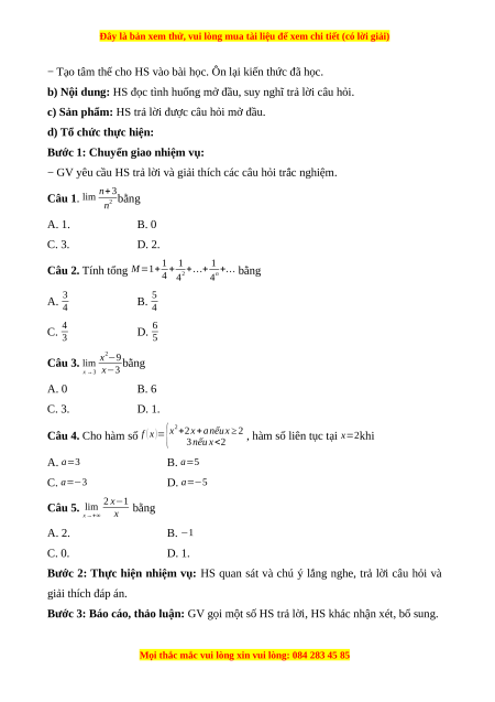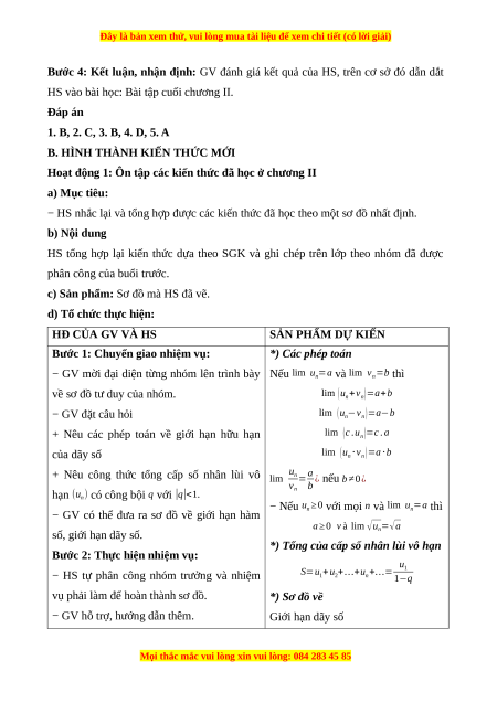 − GV hỗ trợ, hướng dẫn thêm. Giới hạn dãy số