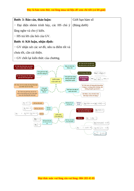 Bước 3: Báo cáo, thảo luận: Giới hạn hàm số