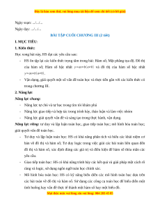 BÀI TẬP CUỐI CHƯƠNG III (2 tiết) I. MỤC TIÊU: