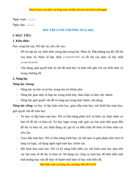 - Vận dụng, giải quyết một số vấn đề toán học và thực tiễn gắn với các kiến thức có trong chương III. 2. Năng lực