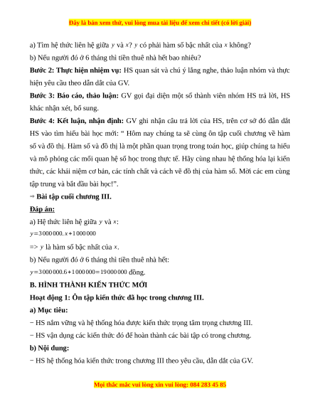Hoạt động 1: Ôn tập kiến thức đã học trong chương III. a) Mục tiêu: