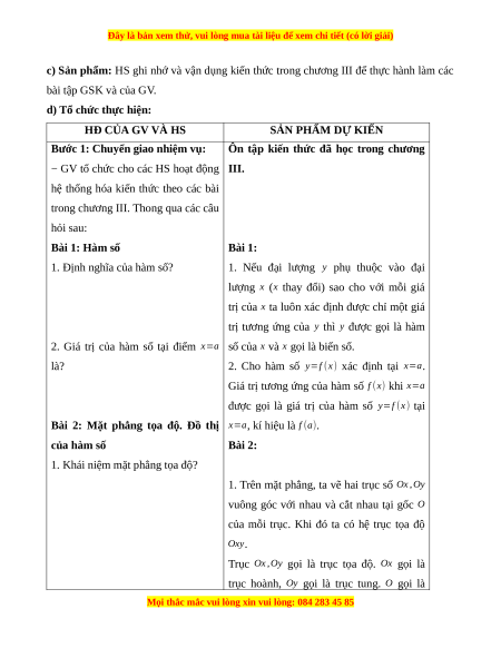 c) Sản phẩm: HS ghi nhớ và vận dụng kiến thức trong chương III để thực hành làm các bài tập GSK và của GV.