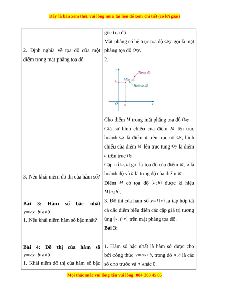 của hàm số; Hàm số bậc nhất y=ax+b(a≠ 0) và đồ thị của hàm số bậc nhất