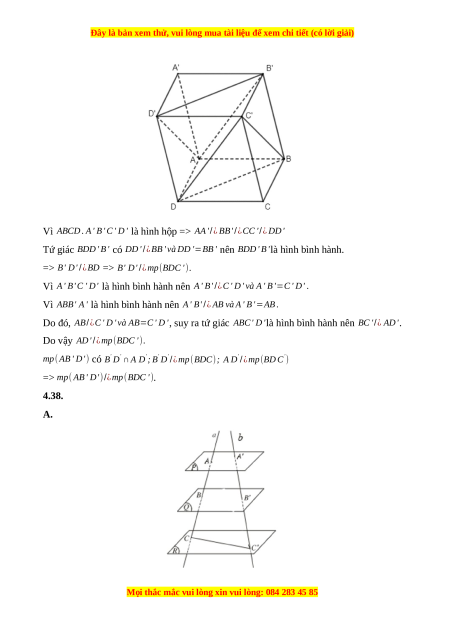 phẳng (Q)chứa a và cắt mặt phẳng (P)theo giao tuyến b thì b song song với a. 4.36. B.