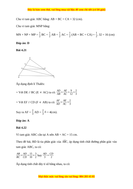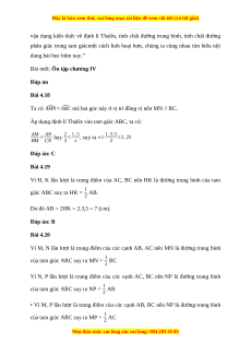 MN + NP + MP = BC + AB + AC = (AB + BC + CA) = . 32 = 16 (cm) 2 2 2 2 2 Đáp án: D Bài 4.21