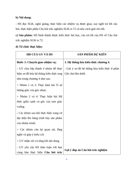 - HS hệ thống các kiến thức trọng tâm trong chương 4.