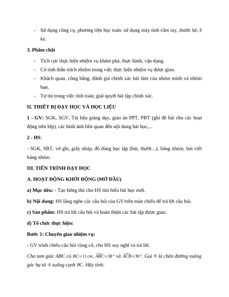- Vận dụng tỉ số lượng giác trong tam giác vuông để giải quyết một số vấn đề thực tiễn. 2. Năng lực
