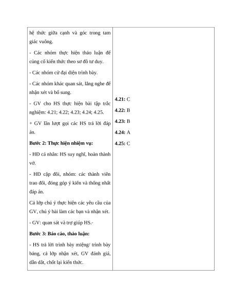 thức giữa cạnh, góc trong tam giác vuông; Giải tam giác vuông.
