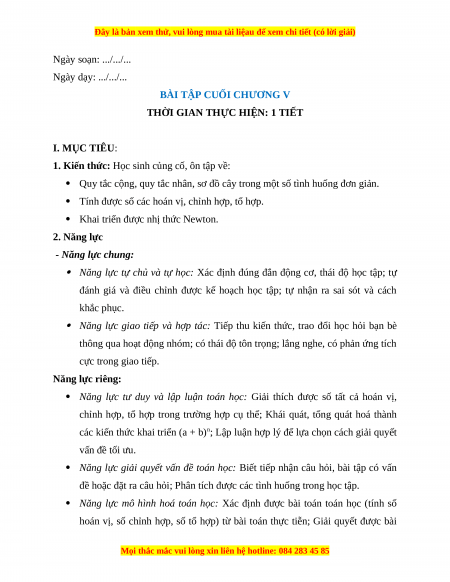 Đây là bản xem thử, vui lòng mua tài liệau để xem chi tiết (có lời giải)