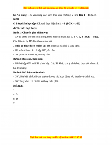 c) Sản phẩm học tập: Kết quả thực hiện Bài 1 – 8 (SGK – tr20)