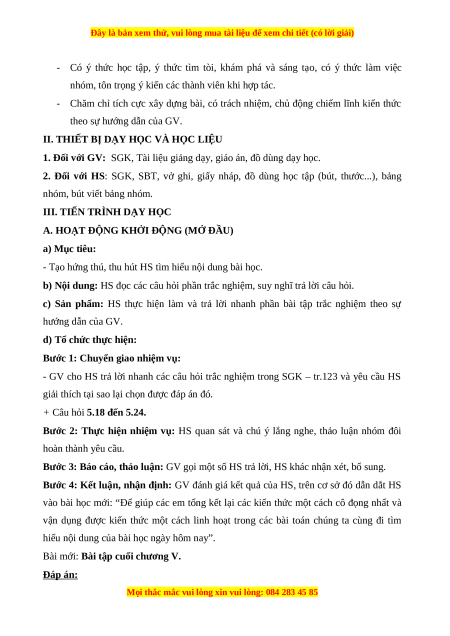 Bài mới: Bài tập cuối chương V. Đáp án: