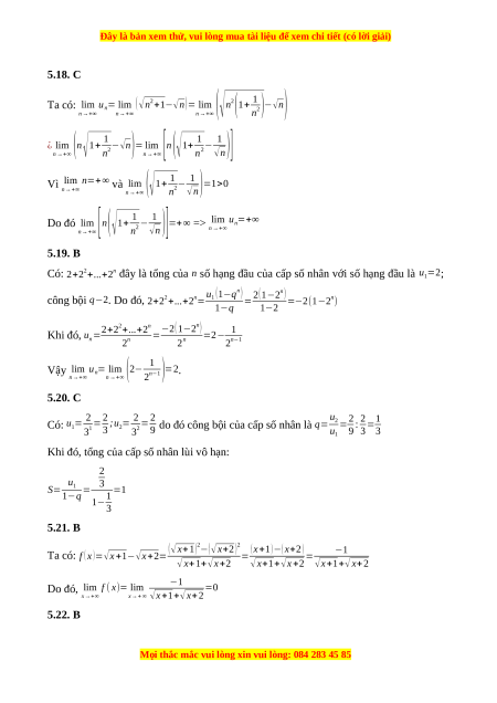 Do đó lim [n(√1+ − )]=+∞ => lim u =+∞ n n → n →+∞ n2 √n +∞ 5.19. B