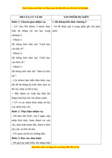 - HS hệ thống hóa kiến thức trong chương V theo yêu cầu, dẫn dắt của GV.
