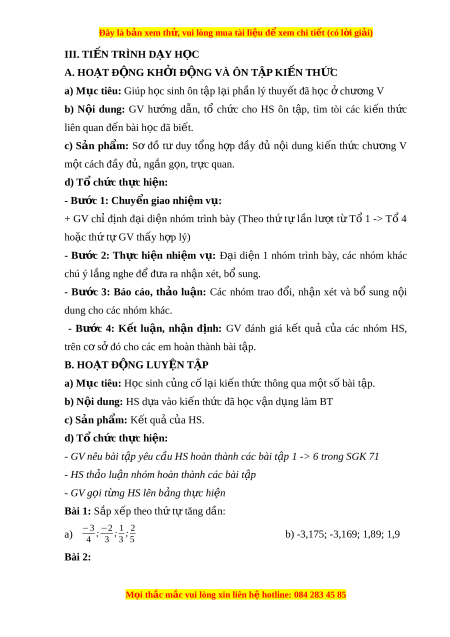 - Chữa bài và làm các bài t p t ậ ổng h p cu ợ ối chư ng ơ V 2. Năng l c ự Năng l c ự chung: Góp ph n ầ t o ạ c ơ h i ộ đ ể HS phát tri n ể m t ộ s ố năng l c ự toán h c ọ nh : ư Năng l c ự tư duy và l p ậ lu n ậ toán h c; ọ năng l c ự sử d ng ụ công c , ụ phư ng t ơ i n h ệ c t ọ oán năng l c gi ự ao ti p t ế oán h c. ọ Năng l c ự riêng: - Bi t ế cách tổng h p ki ợ n t ế h c ứ chư ng ơ VI theo s đ ơ ồ - Làm bài t p ậ 3. Ph m ẩ chất - Rèn luy n ệ tính c n ẩ th n,