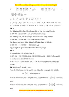 d) 7 . 0,25 + 9 . (- 0,25) = 7 . 0,25 – 9 . 0,25 = 0,25 . (7 – 9) = 0,25 . (-2) = - 0,5 Bài 3: Sau khi gi m ả 12%, thu nh p c ậ a