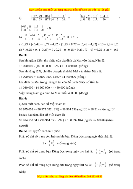 Đây là bản xem th , vu ử i lòng mua tài li u ệ đ xe ể m chi ti t ế (có l i ờ gi i ả ) 29 115 1 29 115 5 a) (617 −1 −4−1 + − + − + − = 191 33 117 ).( 14 5 20 ) = (617 191 33 117 ). 20 (617 29 115 0 + − = 0 191 33 117 ). 20 12 5 12 12 5 b) . − . −10 − . =−8−1=−9 5 (−10 3 12 )= 5 3 5 12