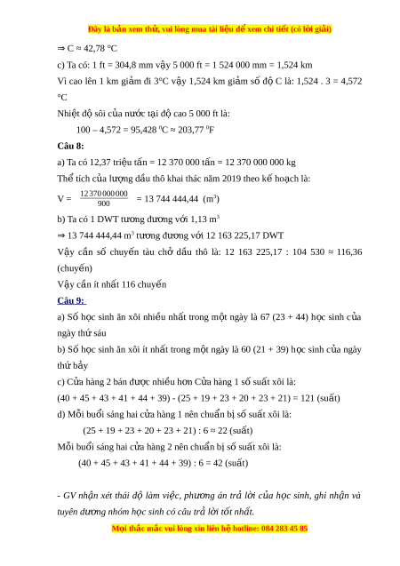 F = (160 + 9 . 100) : 5 = 212 °C b) Nhi t ệ đ c ộ a ủ m t ặ đư ng ờ nh a vào t ự h i ờ đi m ể đó theo đ C ộ là: 109 = (160 + 9 . C) : 5 ⇒ C = (109 . 5 - 160 ) : 9 M i ọ thắc m c