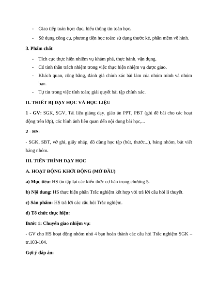 - Sử dụng công cụ, phương tiện học toán: sử dụng thước kẻ, phần mềm vẽ hình. 3. Phẩm chất