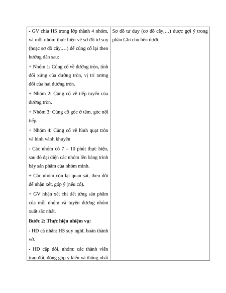 và mỗi nhóm thực hiện vẽ sơ đồ tư suy phần Ghi chú bên dưới.