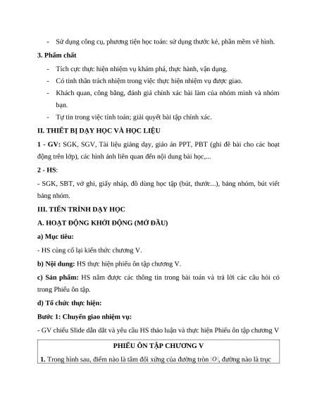 - Sử dụng công cụ, phương tiện học toán: sử dụng thước kẻ, phần mềm vẽ hình. 3. Phẩm chất