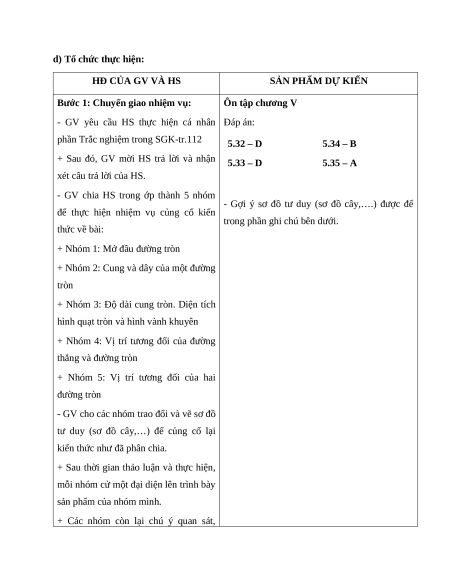 d) Tổ chức thực hiện: