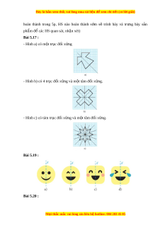 ẩ để các HS quan sát, nh n xét ậ ) Bài 5.17 : - Hình a) có m t ộ tr c đ ụ ối x ng ứ - Hình b) có 4 tr c đ ụ ối x ng và m ứ t ộ tâm đ i ố x ng. ứ - Hình c) có tám tr c đ ụ i ố x ng và m ứ t ộ tâm đ i ố x ng. ứ Bài 5.19 : Bài 5.20 : M i ọ thắc m c