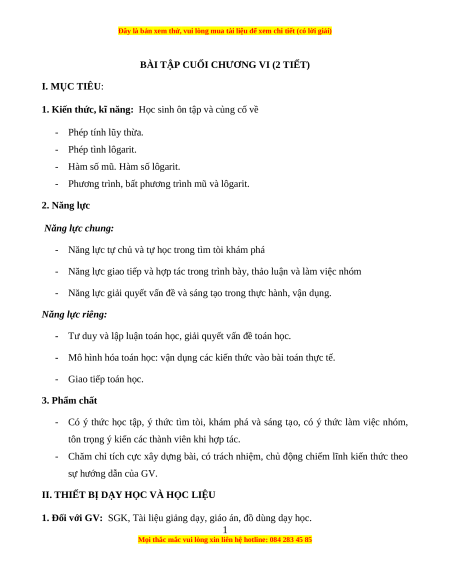 - Phương trình, bất phương trình mũ và lôgarit. 2. Năng lực
